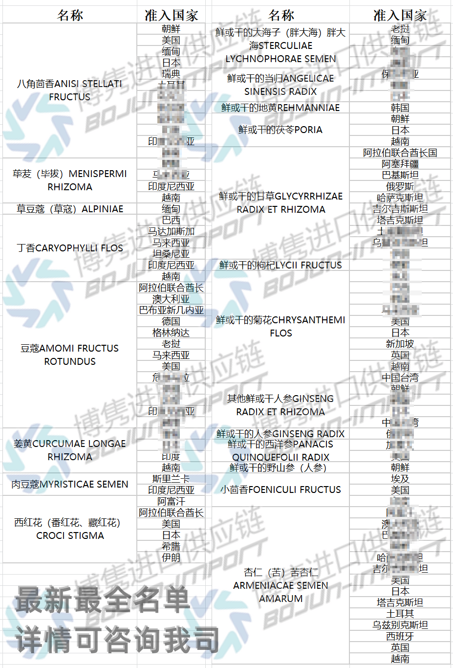 海關總署對進境農副產品/香料/藥材實施檢疫準入制度,包括產品風險分析、出口國家或地區監管體系評估與審查、確定檢疫要求、境外生產企業注冊登記等。目前只有列入“評估審查符合要求及有傳統貿易的國家或地區輸華食品目錄”的藥材品種才能進口。
