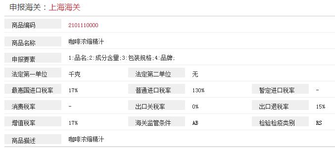 2)經(jīng)過烘焙的咖啡粉和咖啡豆,進口關(guān)稅是15%,增值稅17%,無消費稅。相關(guān)咖啡粉進口海關(guān)編碼(HS):09012100,09012200.